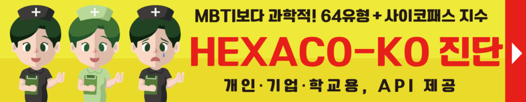 ※HEXACO-JP성격진단을 개발했습니다! MBTI보다 과학적 근거가 있습니다. 자세한 내용은 아래를 탭해주세요.